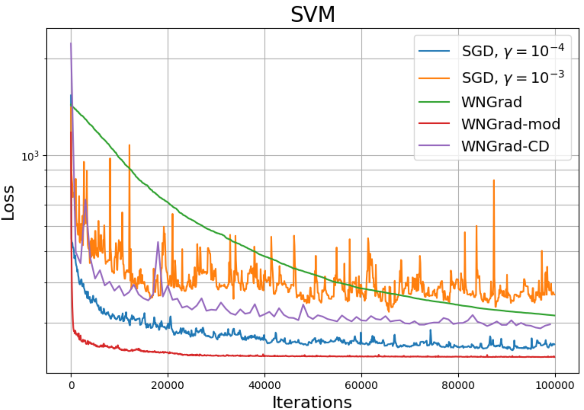 In this project we have implemented the algorithm WNGrad presented by Léon Bottou et. al. and compared its performance against other standard, gradient-based optimization algorithms. The main advantage of WNGrad over other algorithms like SGD or Adagrad is that, if there is a correct initialization, there is no hyperparameter to fine-tune -a process which can be very resource consuming-. We tried different problems, including convex problems (least squares, support vector machines) and non-convex problems (dense neural networks, convolutional neural networks).