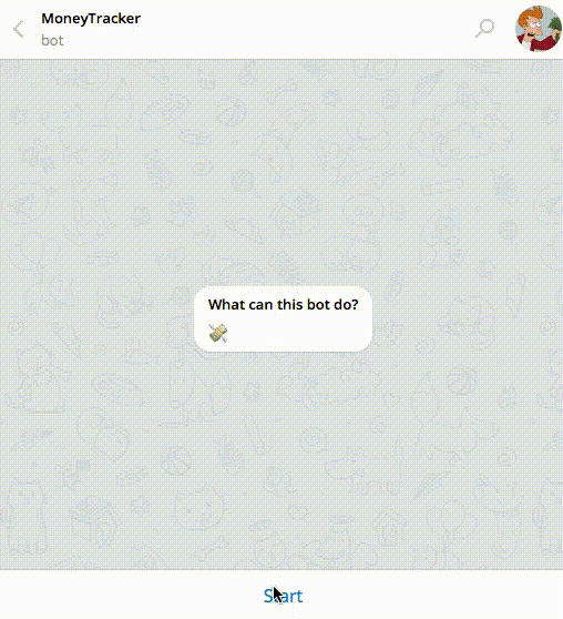 docker run --restart=always --name mt -d -v /home/ubuntu/money_tracker_conf/:/MoneyTracker/conf/ ayumukasuga/moneytrackerbot/home/ubuntu/money_tracker_conf/- folder with your configs In this case you will use my docker image, but of course you can build your own. - Say Hello to your new bot :). Bot will answer you only if you exist in