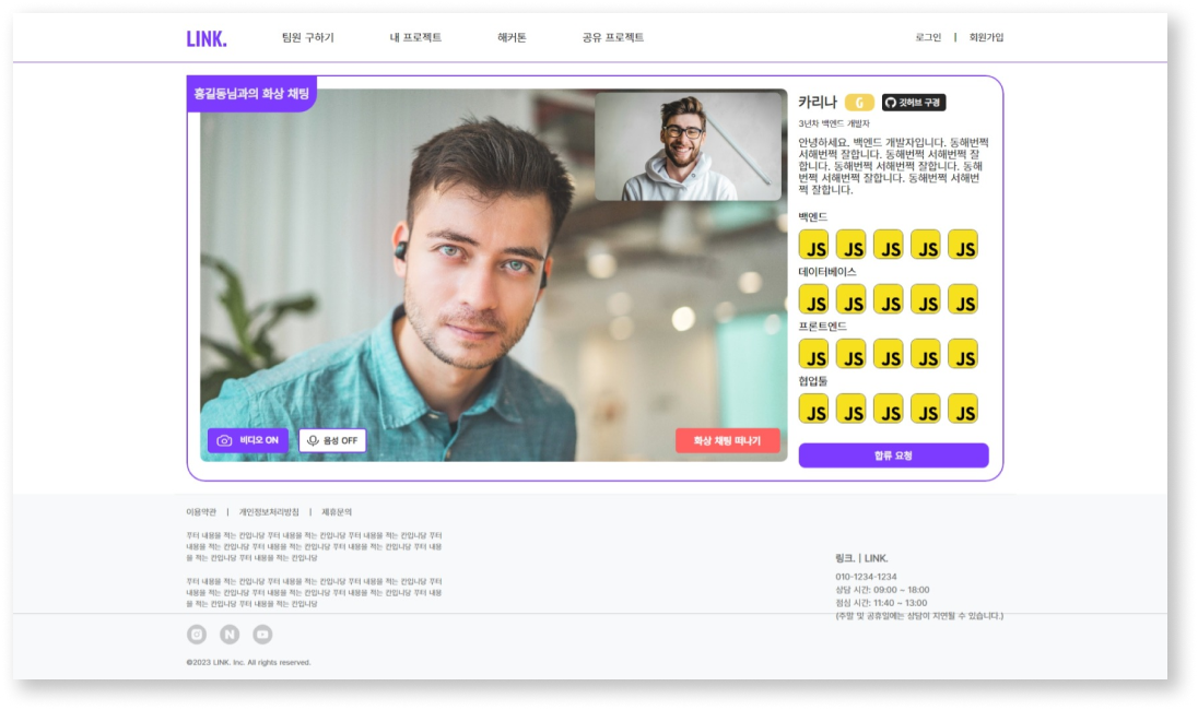 WebRTC기술을 활용하여 면접예약한 사용자와 화상면접을 진행할 수 있습니다.