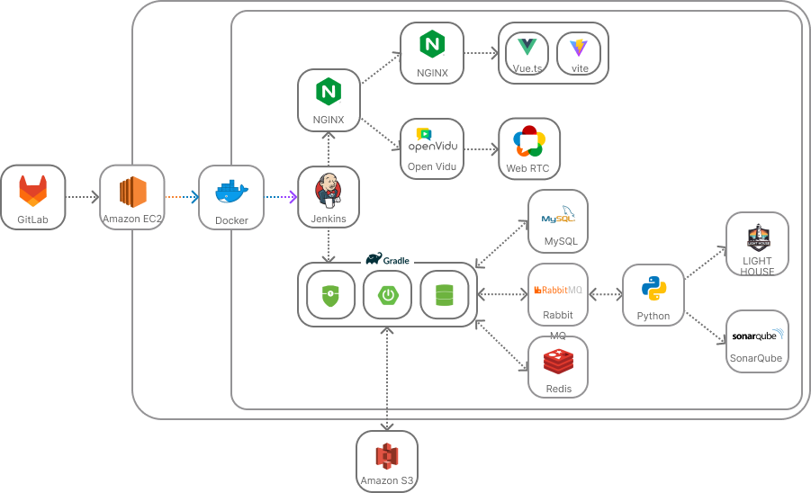 Docker,AWS EC2, AWS S3, Nginx, Jenkins, WebRTC OpenVidu
