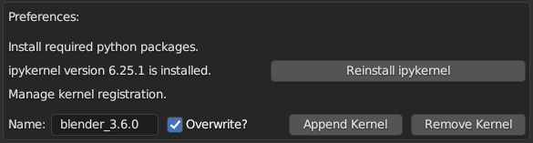 Click Append Kernel to register this Blender as a kernel for use in Jupyter Notebooks.