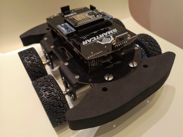 The Smartcar platform is a complete hardware solution for your hobby-grade, connected vehicle project. It is comprised of the chassis, made out of printed circuit boards, stacked on each other and an ESP32 development board that drives the motors, controls the sensors and communicates with the world via WiFi and Bluetooth.