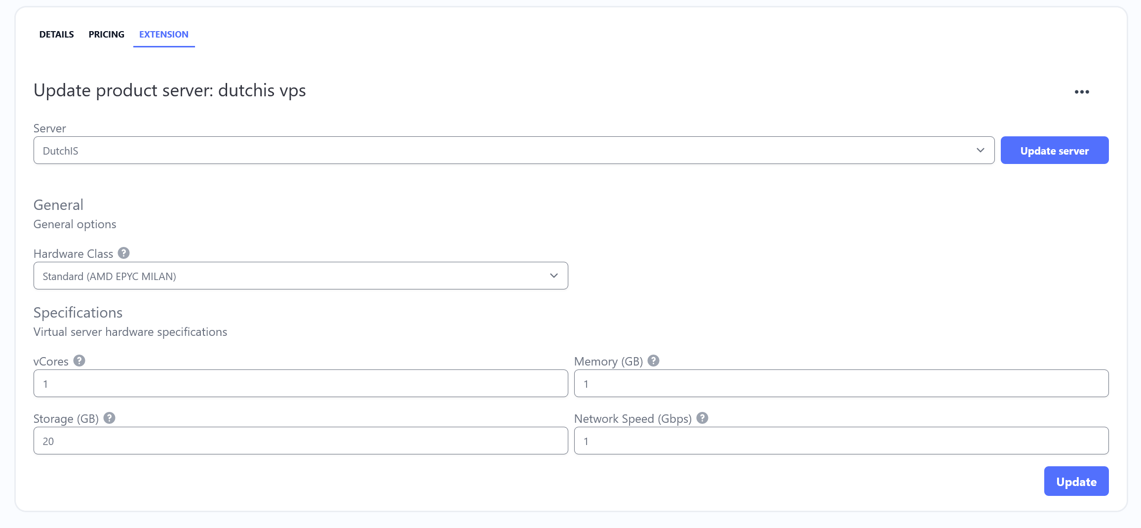 - Fill in your team UUID and API token in paymenter: https://your.paymenter.install/admin/extensions/edit/server/DutchIS