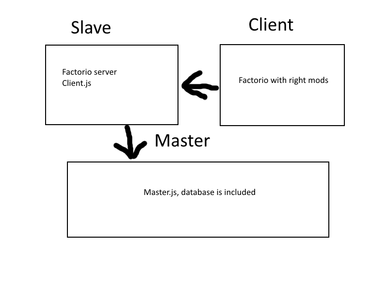 Server host (Slave) = client.js + factorio server