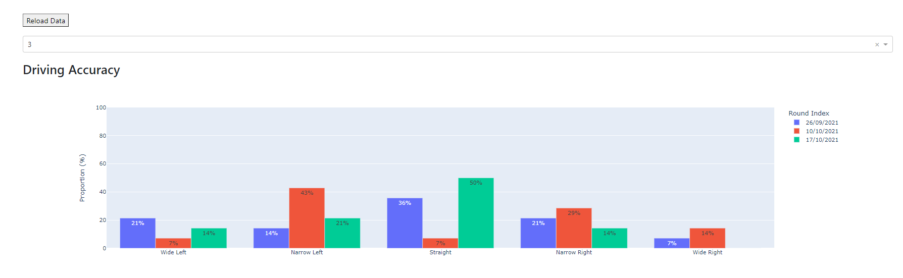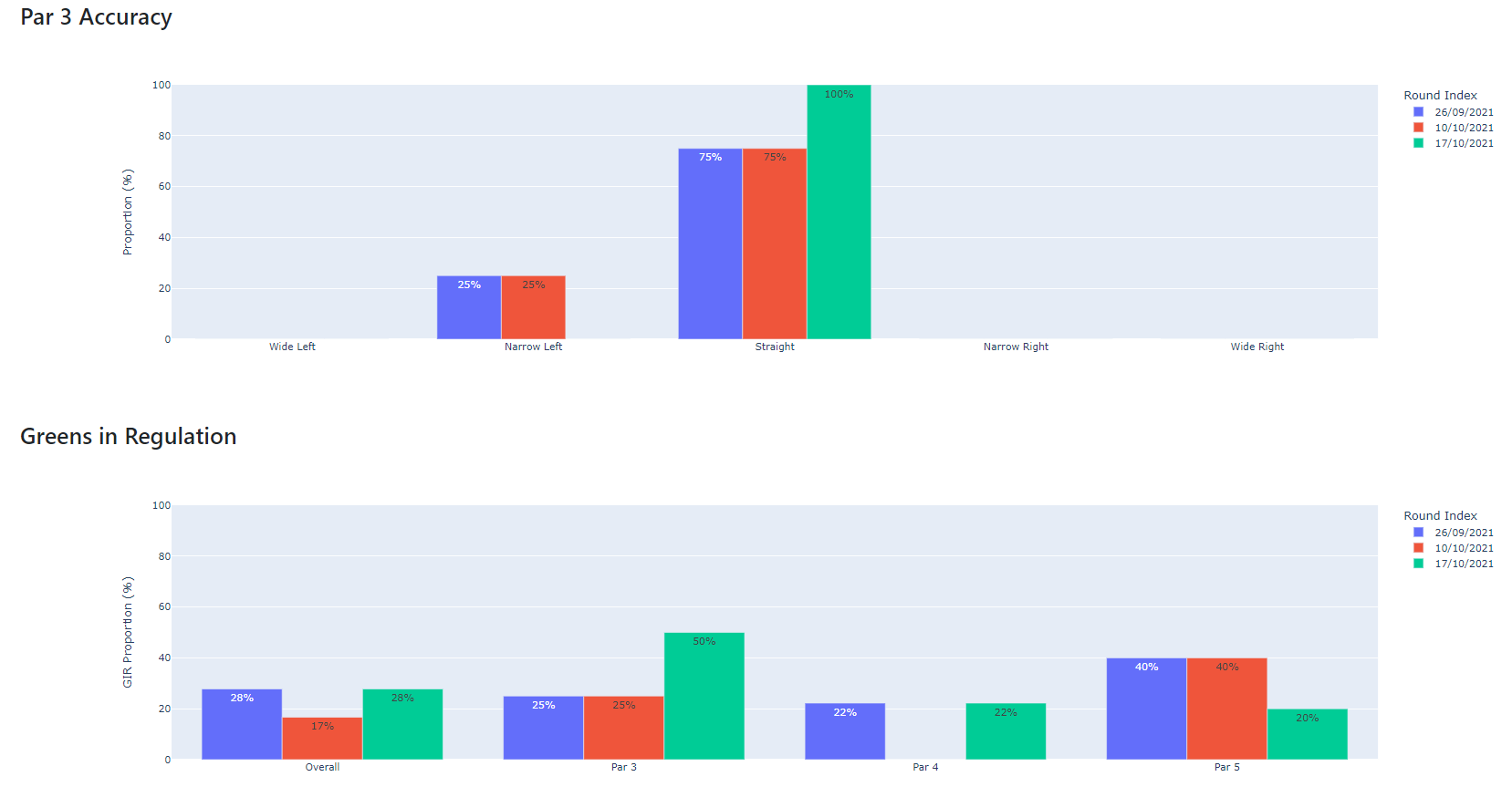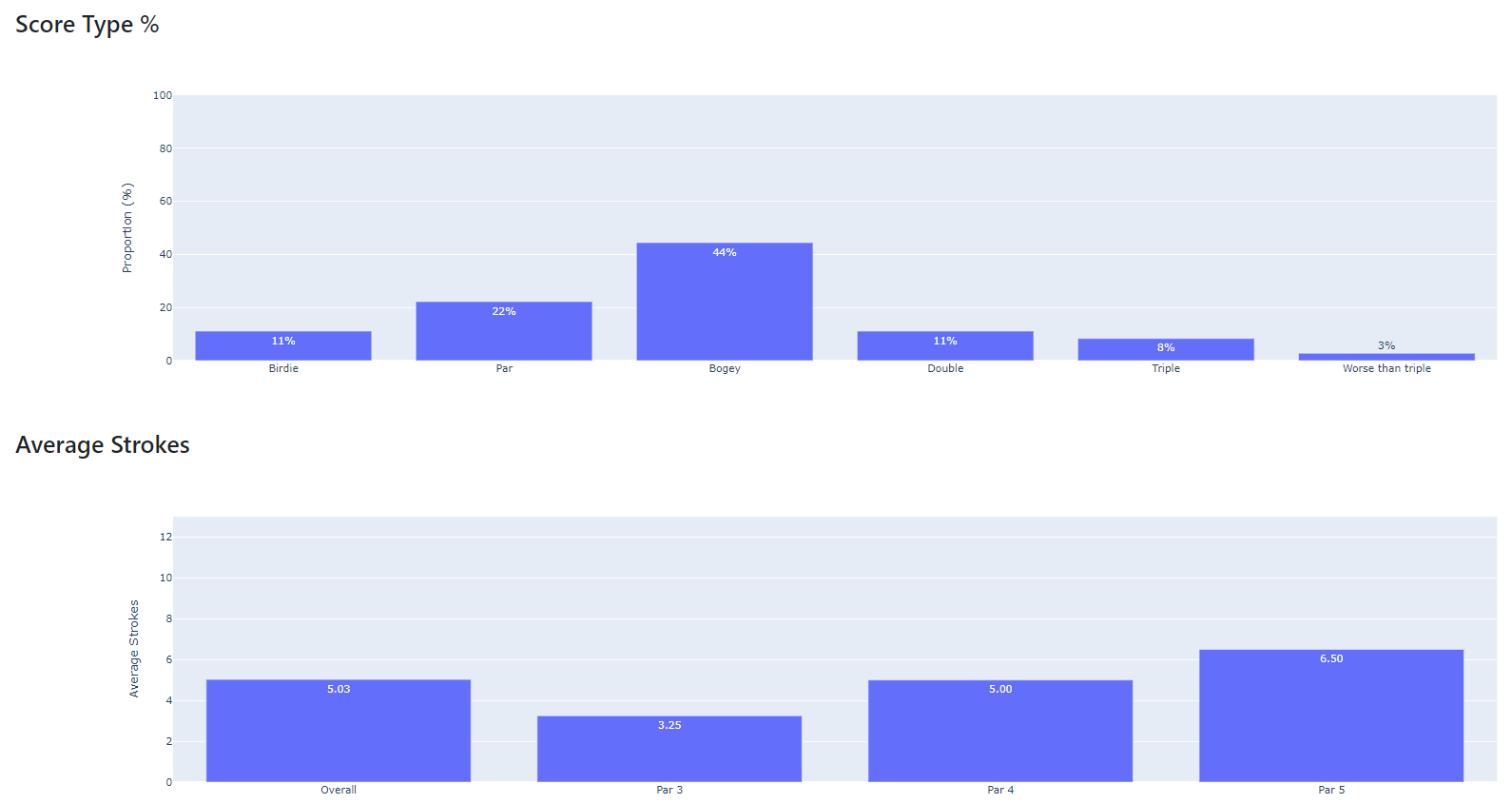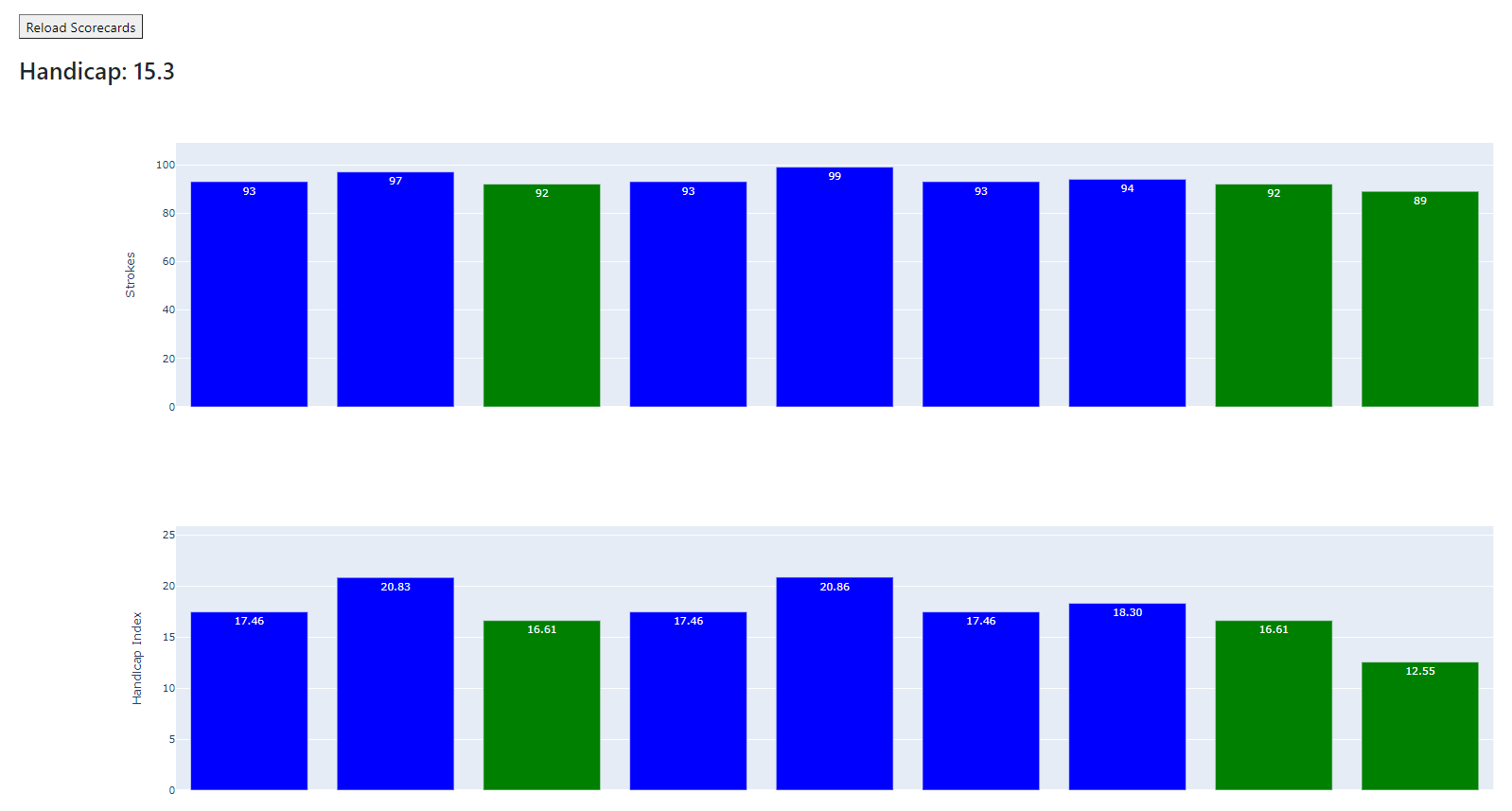 This is an interactive dashboard for tracking and analysing golf scores. Scorecards for desired courses should be created and stored with the same form and naming convention as those in the "Courses" folder here. Once courses have been created just run the "app.py" file in cmd and go to the url specified in the output.