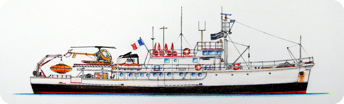Named after Calypso, the sea nymph from Greek mythology, the ship and its crew sailed the world’s seas and oceans from November 24, 1951, until January 1996. Through television and books, the Calypso became one of the symbols of maritime exploration and global ecology in the second half of the 20th century, in the tradition of its illustrious predecessors such as La Boussole and L’Astrolabe, the Beagle, the Challenger, the Pourquoi Pas?, and the Hirondelle.