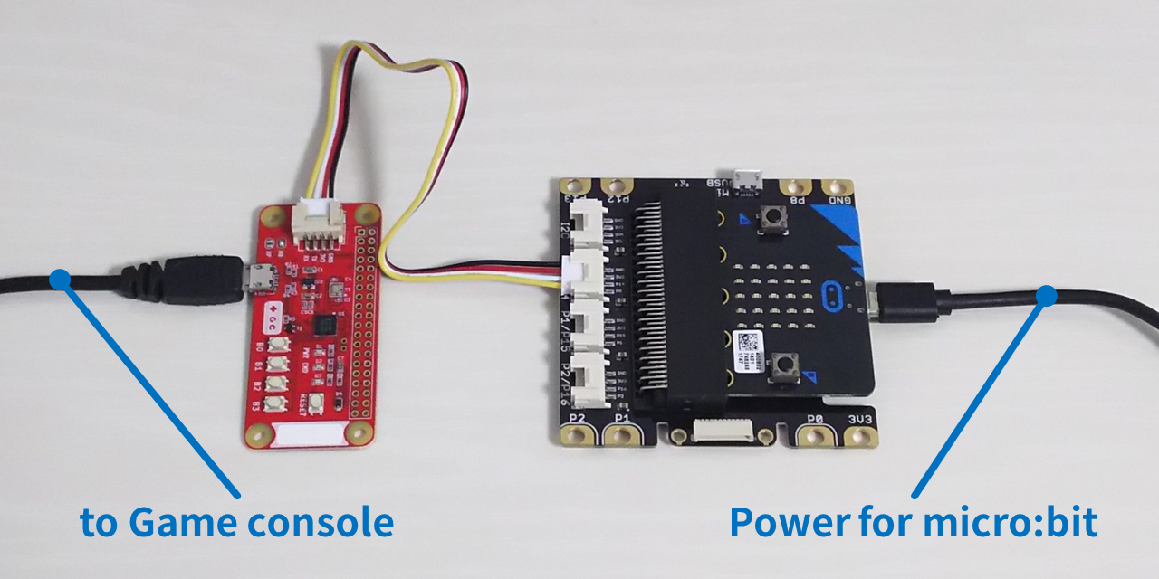 - 本製品/ゲームコンソール / ホストマイコン(micro:bit) と接続します(下図)