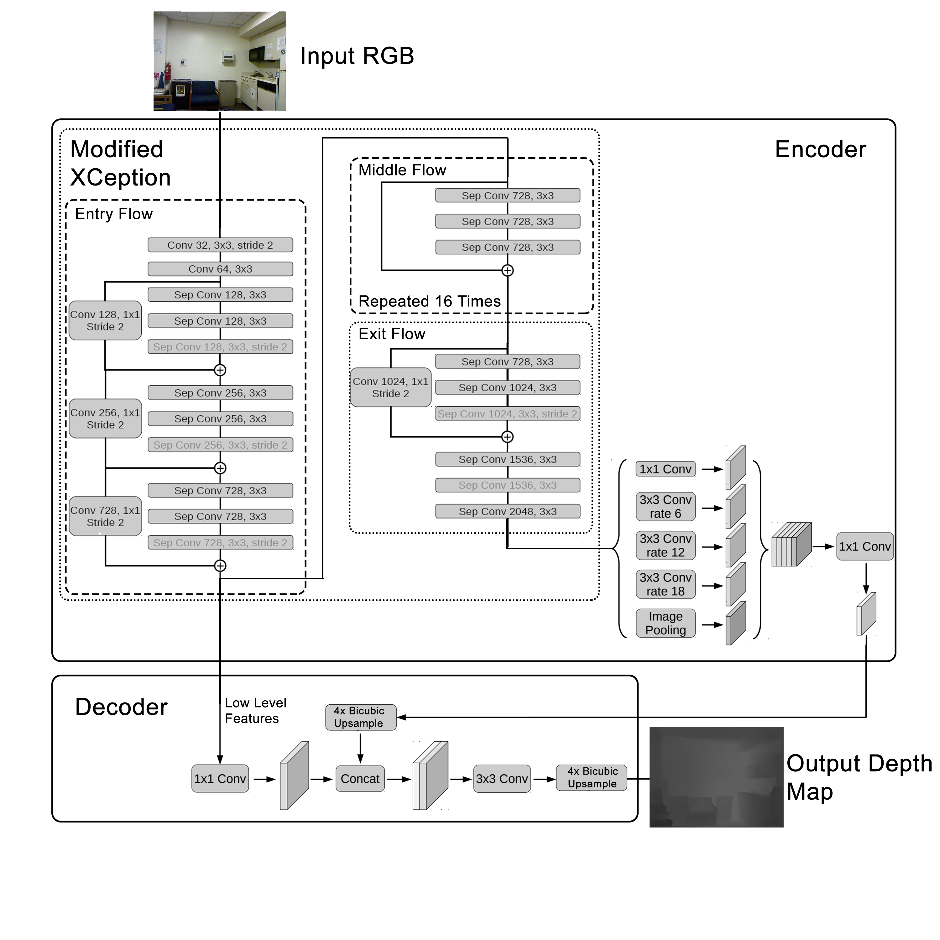 To tackle the above problem, we propose a fully convolutional DCNN approach to learning and generating depth maps from single RGB images, utilising Atrous Convolution layers and ASPP for semantic segmentation and feature pooling & extraction in a convolutional neural network, employing an encoder-decoder architecture. We also apply Bicubic upsampling convolutions to further boost depth estimation accuracy, while simplifying previously proposed architectures so as to improve on performance, taking into consideration the computational and accuracy constraints that plague prior efforts.