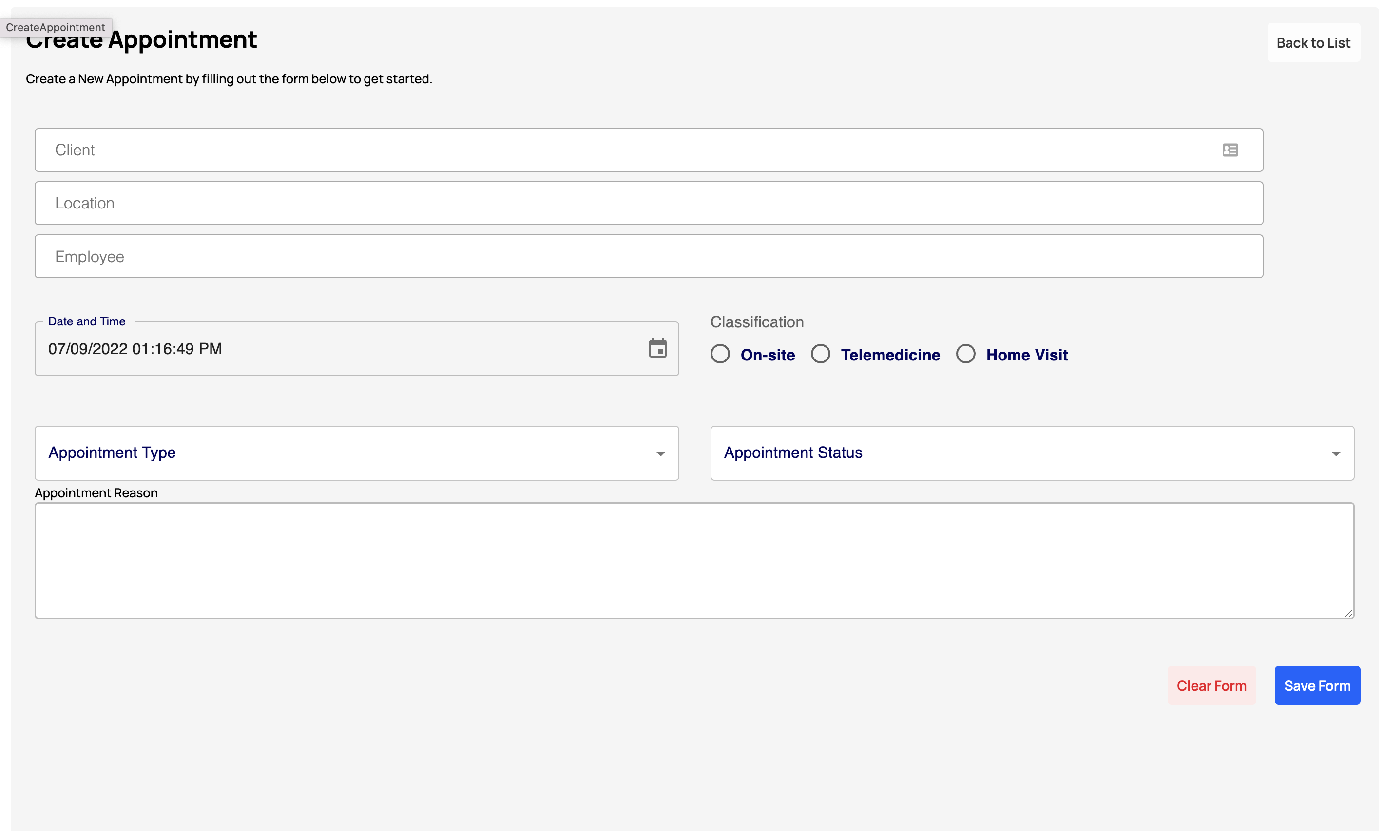 Update "save form" caption on Appointment page to "Create Appointment" #83
