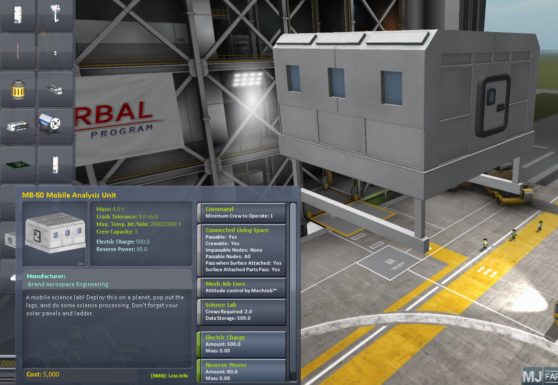 When on the ground you can deploy the Lab's legs (not required for it to function). It has a Hatch for EVA purposes.