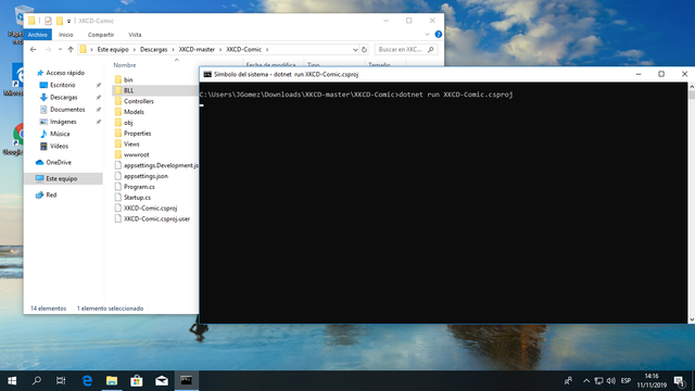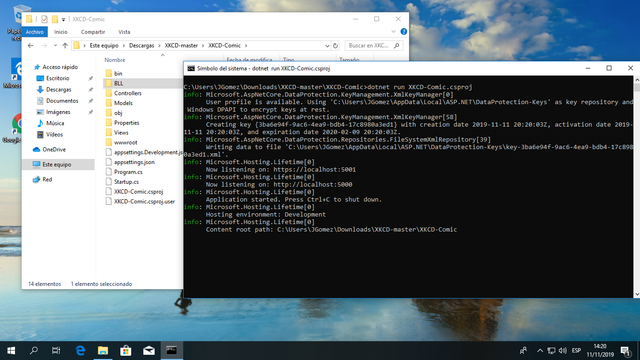 Una vez dentro de la capeta XKCD-Comic (en la consola de Windows), ejecutamos el siguiente comando dotnet run XKCD-Comic.csproj, esto realizará la compilación del proyecto, re-estructurará las dependencias del mismo y nos permitirá levantar un servidor para ejecutar la aplicación. Esto puede tomar un par de minutos.