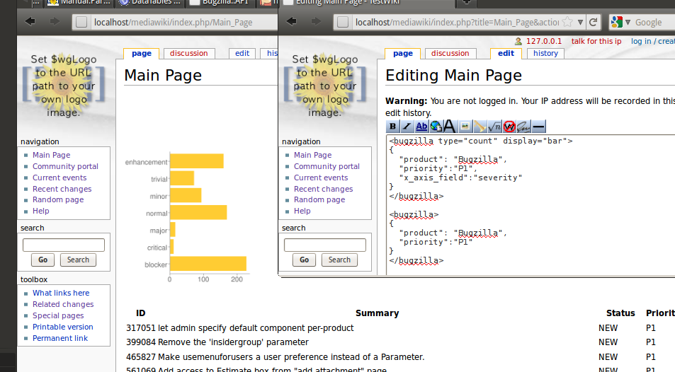 /etc/mediawiki/LocalSettings.phpand addrequire_once("/var/lib/mediawiki/extensions/Bugzilla/Bugzilla.php"); - Edit