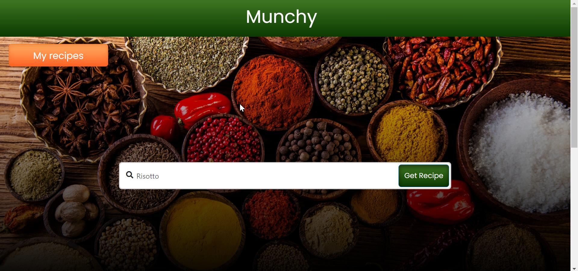 Technical Details The Munchy Recipe Search Website is built using HTML, CSS, JavaScript, and jQuery, with the help of popular CSS frameworks like Bootstrap and Line Awesome. The website uses a third-party API to retrieve recipe data and stores saved recipes in the user's local storage.