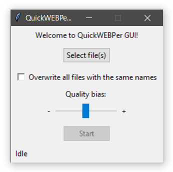 QuickWEBPer was conceived as a "no-config" batch converter, i. e. with a web-ready, input-aware compression profile. It deliberately silently skips non-image files so you don't have to be too careful about multiple file input.