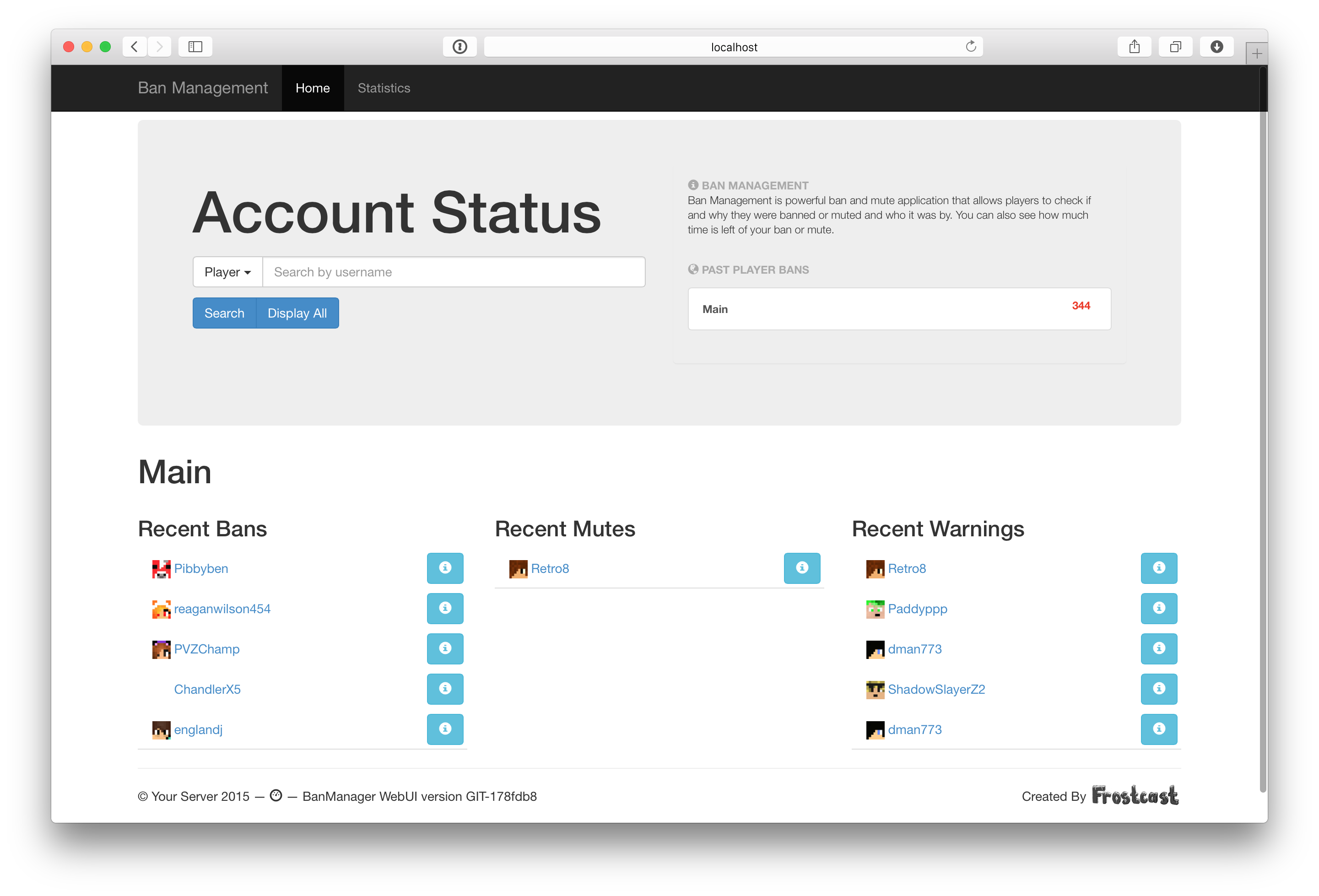 - All done! If you have some bans, test it. Click "Home", in the search box type % and hit search. It will list all players that are currently banned or have been banned.