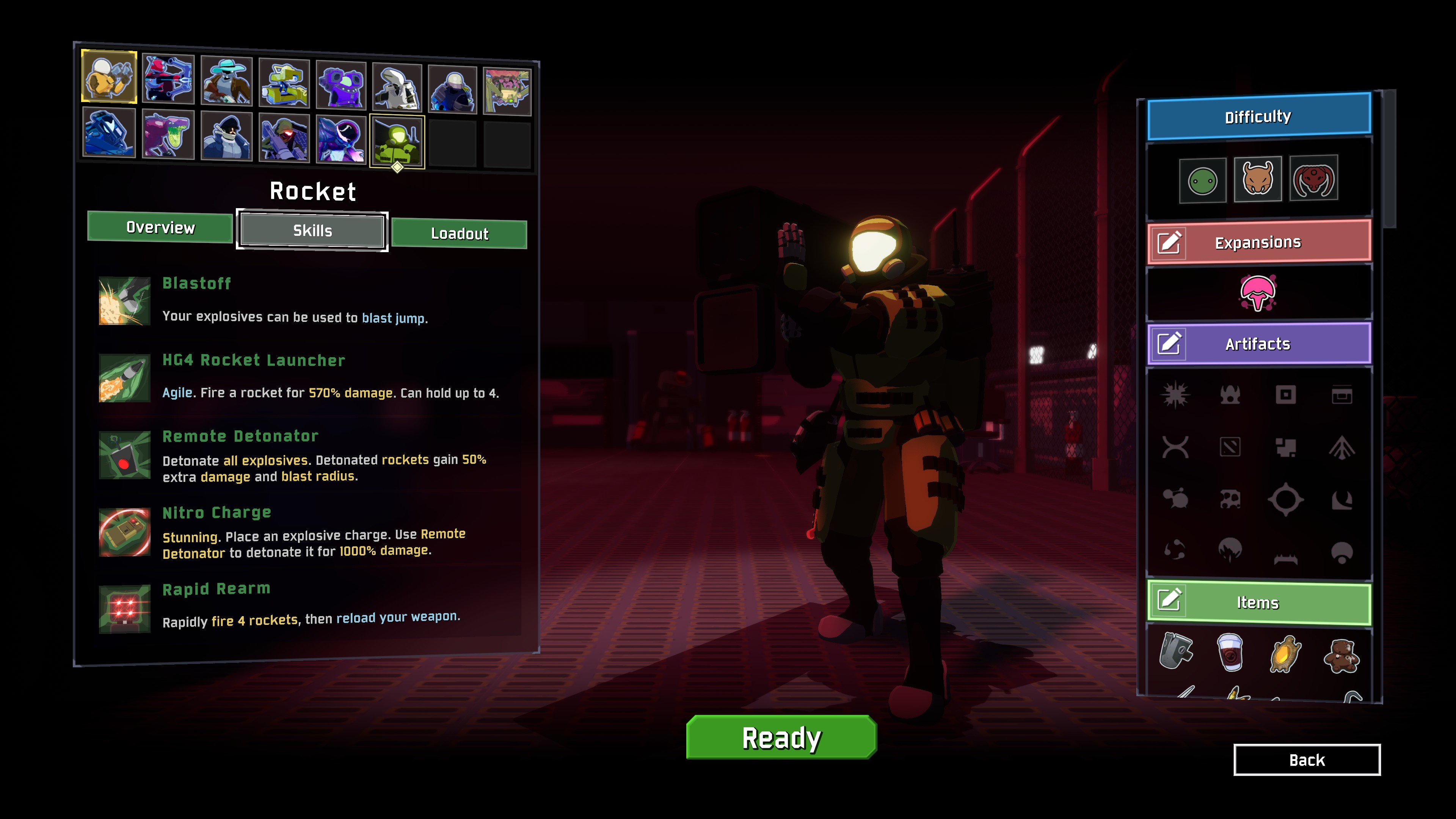 - Rocket knockback scales with enemy mass when hitting non-boss enemies (up to 250kg, Brass Contraption weight)