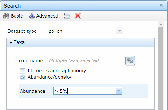 Expand the Search by abundance threshold parameter to diatom dataset type.