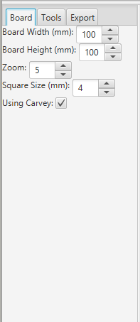 - The black L-Shape in the above image represents the smartclamp of the Carvey. This may be enabled or disabled with the Using Carvey option in the Board Tab of the Context Menu