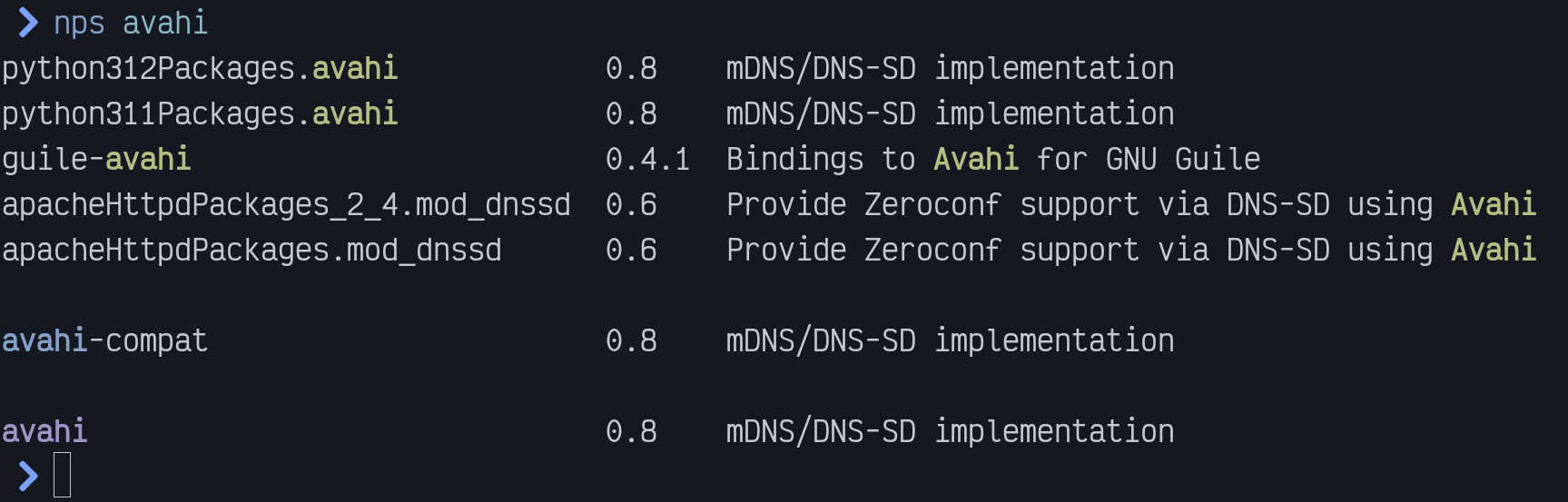 [env: NIX_PACKAGE_SEARCH_MULTI_LINE=]