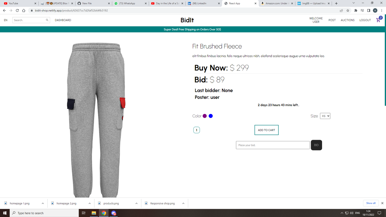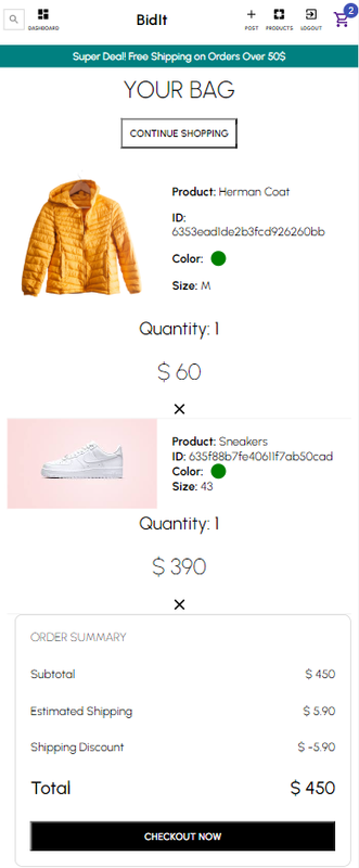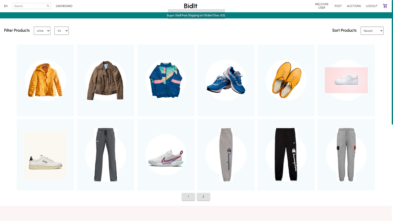 - Dashboard for the user to show products you've put up to auction and products you've bid on, with the ability for user actions.