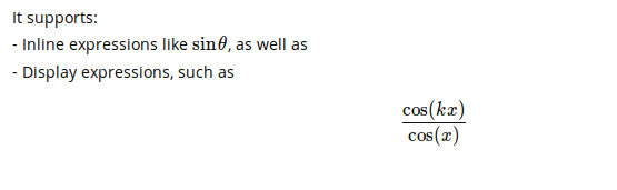 $\sin\theta$, as well as - Display expressions, such as