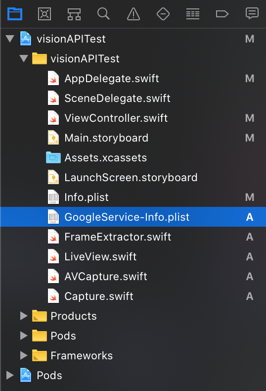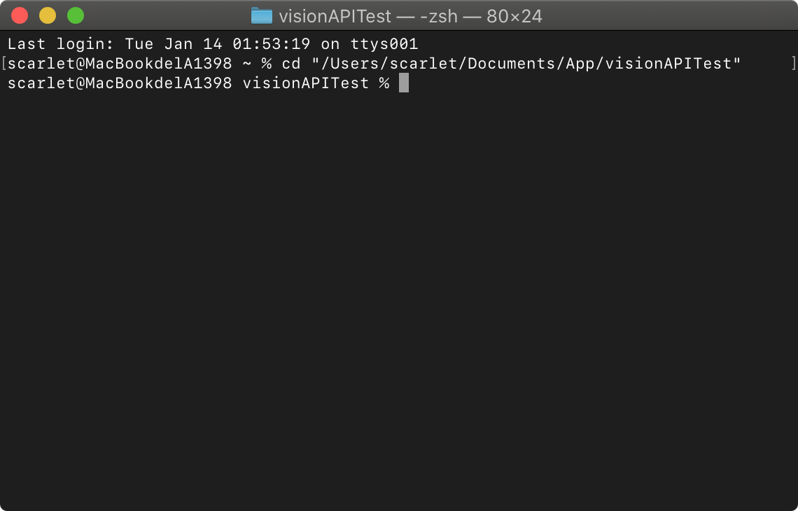 cd "/Users/scarlet/Documents/App/visionAPITest") - You will see the directory name appear on the left