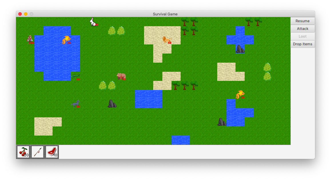 This is survival game. It is two thousand lines of code and a labor of love made by three CS students.