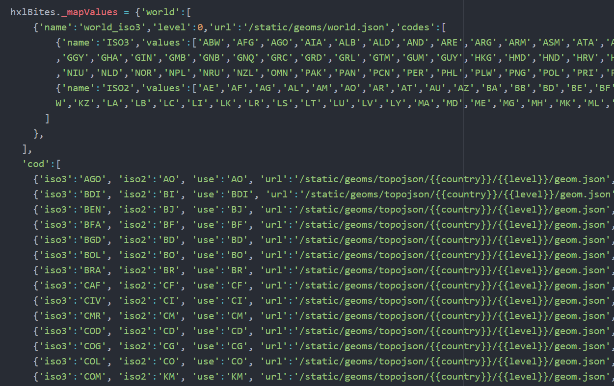 {'iso3':'CAN', 'iso2':'CN', 'use':'CN', 'url':'/static/geoms/topojson/{{country}}/{{level}}/geom.json','adjustment':0,'code_att':'admin{{level}}Pcode','name_att':'admin{{level}}Name','levels':[1,2,3]},