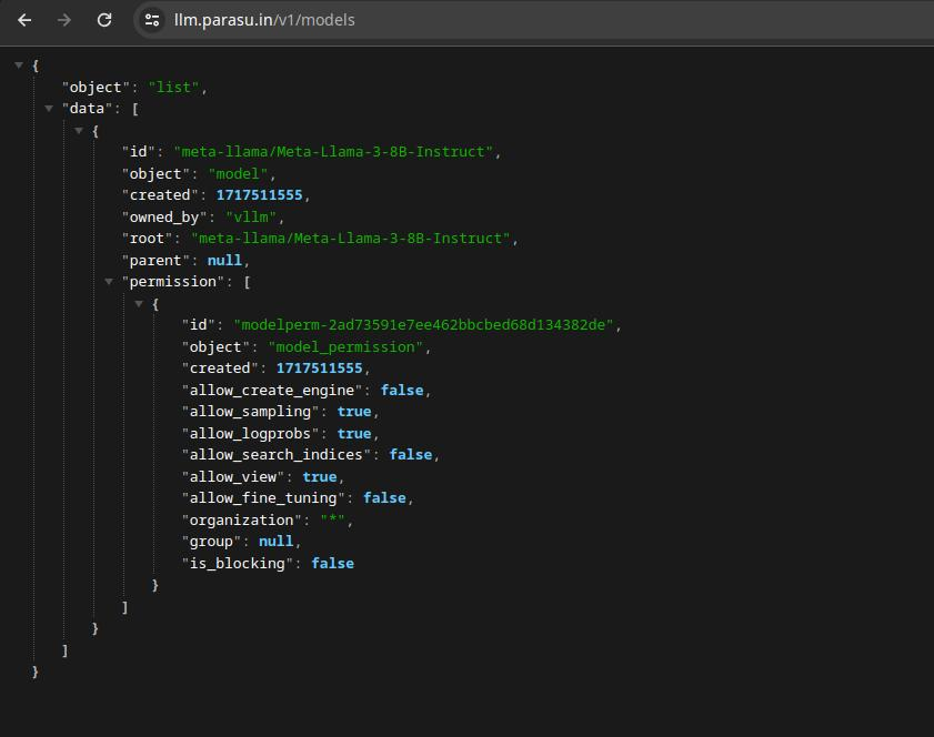 I've hosted Llama 3 8B on an A100 instance using VLLM. This model runs on VLLM, using FP8 cache, which enables the model to run with high throughput using just ~20GB VRAM (allowing it to run on cheaper GPUs like L4). I've hosted this model and used a reverse proxy to one of my subdomains - https://llm.parasu.in/v1/.