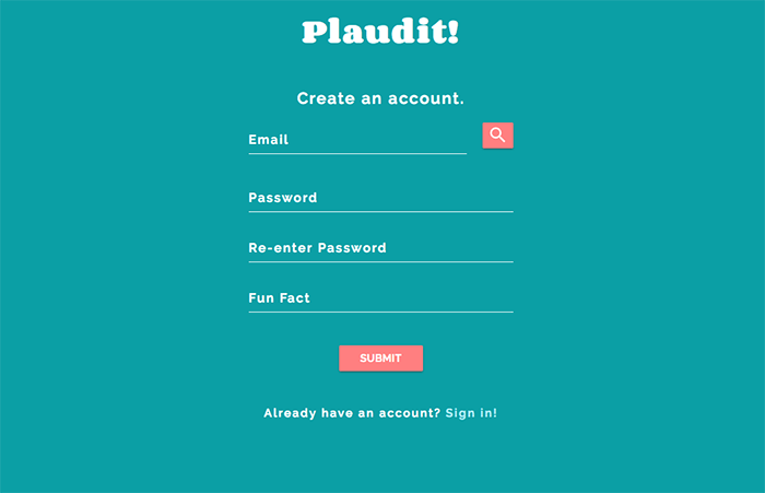 Plaudit users may only 'register' for the site once they exist in the organization/company database - this will seed basic information about each user, including their name, email, work phone number, position, and supervisor. A new user registers by creating a password and including any extra information that will be displayed on their profile page (currently we incorporate a 'fun fact' about the user). The encrypted password and extra information is then stored in a second database.