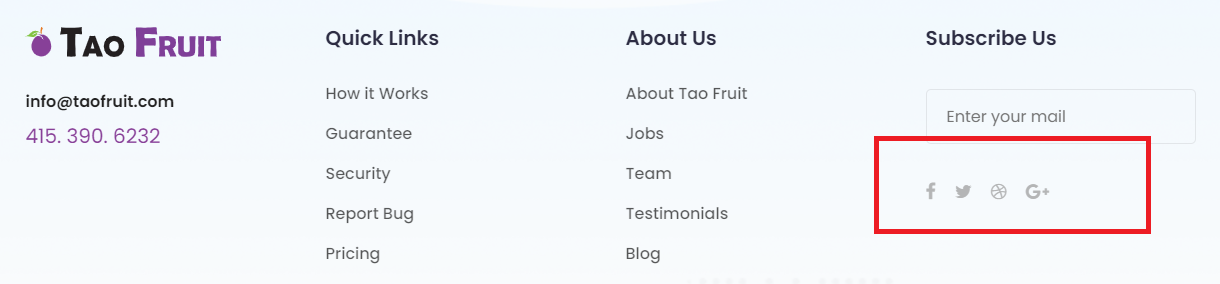 Put social media links in the social media icon in the footer of the https://taofruit.com/.