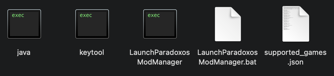 This is the bin directory; I have tried it with supported_games.json both in the parent directory and here in the bin directory: