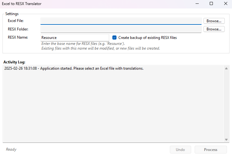 - RESX Name: Name for your RESX files (files with this name will be created or modified if they exist)