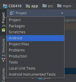 Note: You can change the view of your project with the dropdown. Currently it's on "Android" although I prefer the "Project" view. It's personal preference
