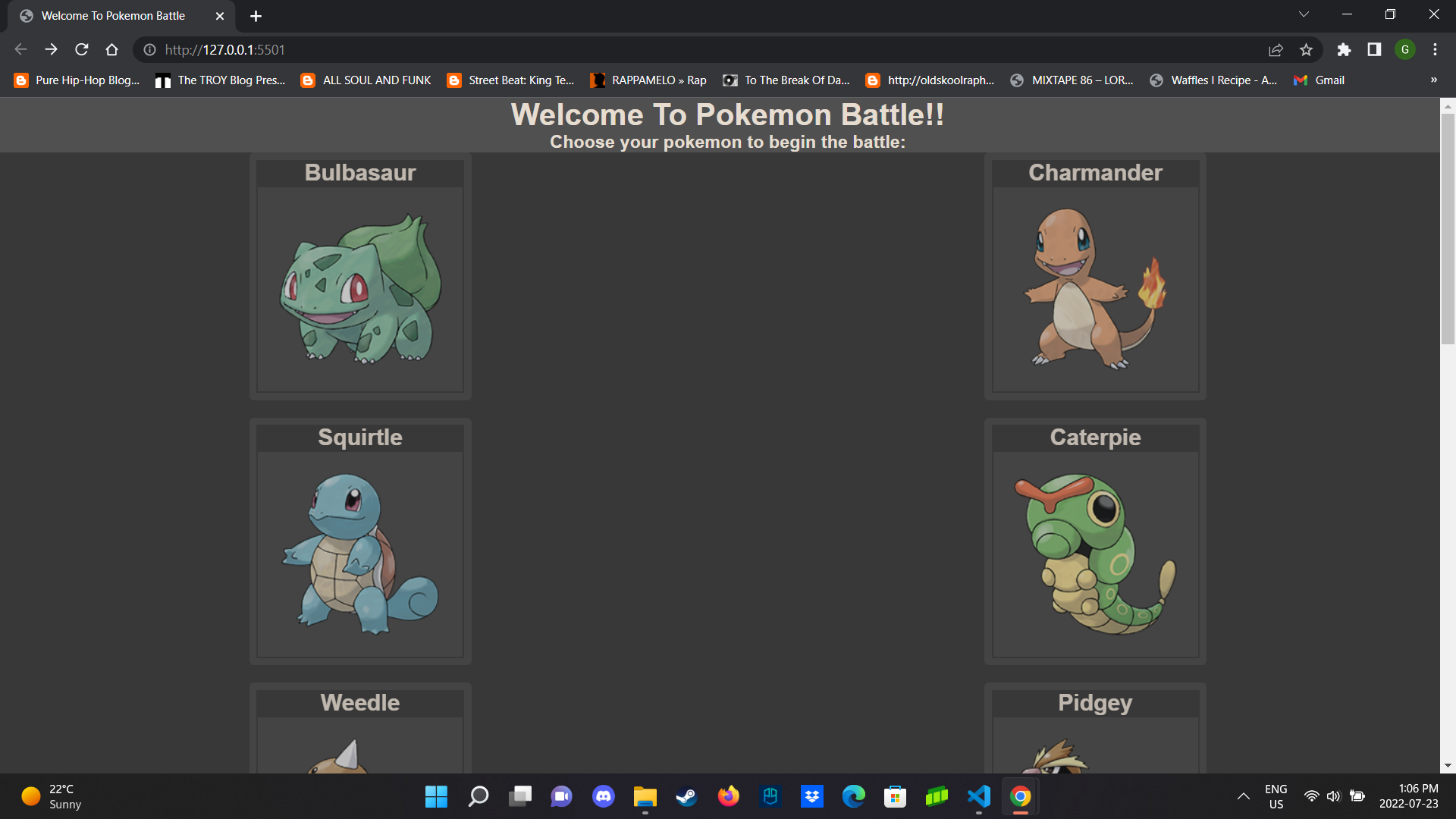 Pokemon Battle for hackathon assignment. User chooses one from three Pokemon to battle a randomly generated boss