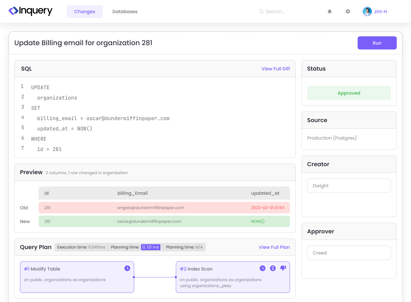 - Approval Flow: Require query review before a change can be run