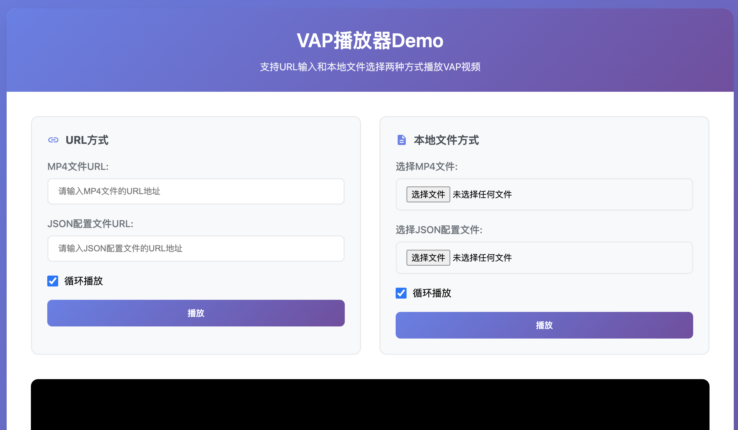 - 在"URL方式"卡片中输入MP4和JSON文件的URL
