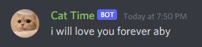 WELCOME TO CAT TIME to run bot python bot.py in working directory adopt a cat today. invite cat time https://discord.com/api/oauth2/authorize?client_id=727984473358204938&permissions=0&scope=bot%20applications.commands Cat Time may need role permissions granted in your server: View Channels, Manage Roles, Send Messages
