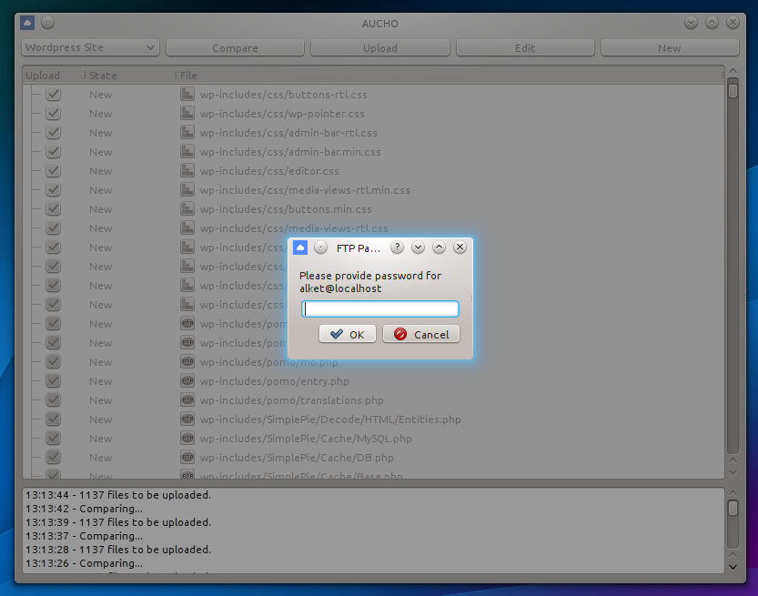 Upload only your modified and new files on FTP. It uses MD5 (in next version will be changed to CRC-32) to store hash in sqlite db and will compare them with another db which stores uploaded data.