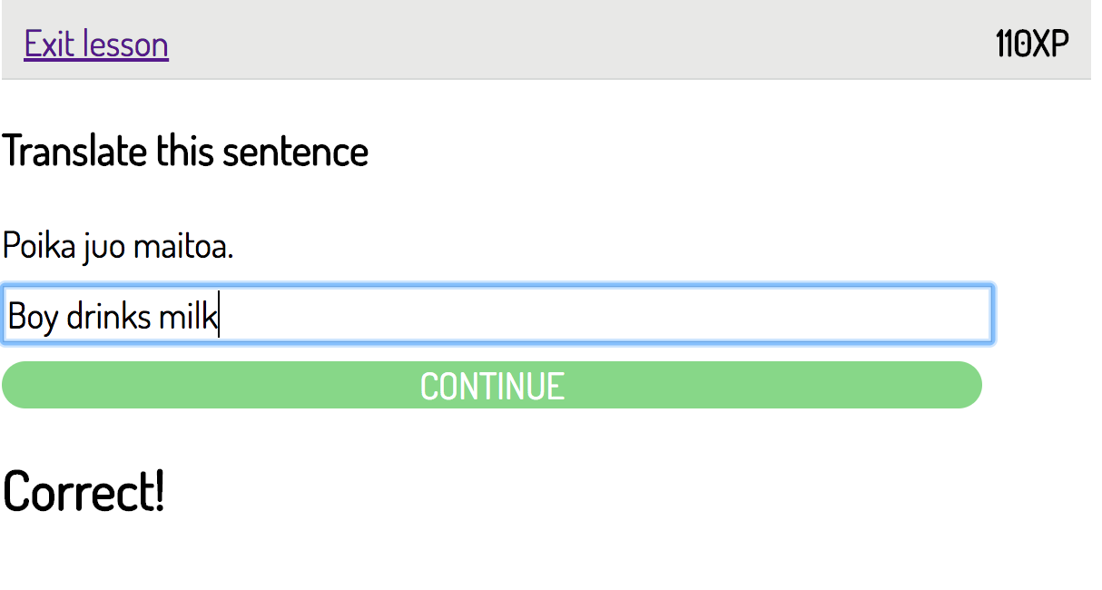 Duolingo-like application for learning Finnish.