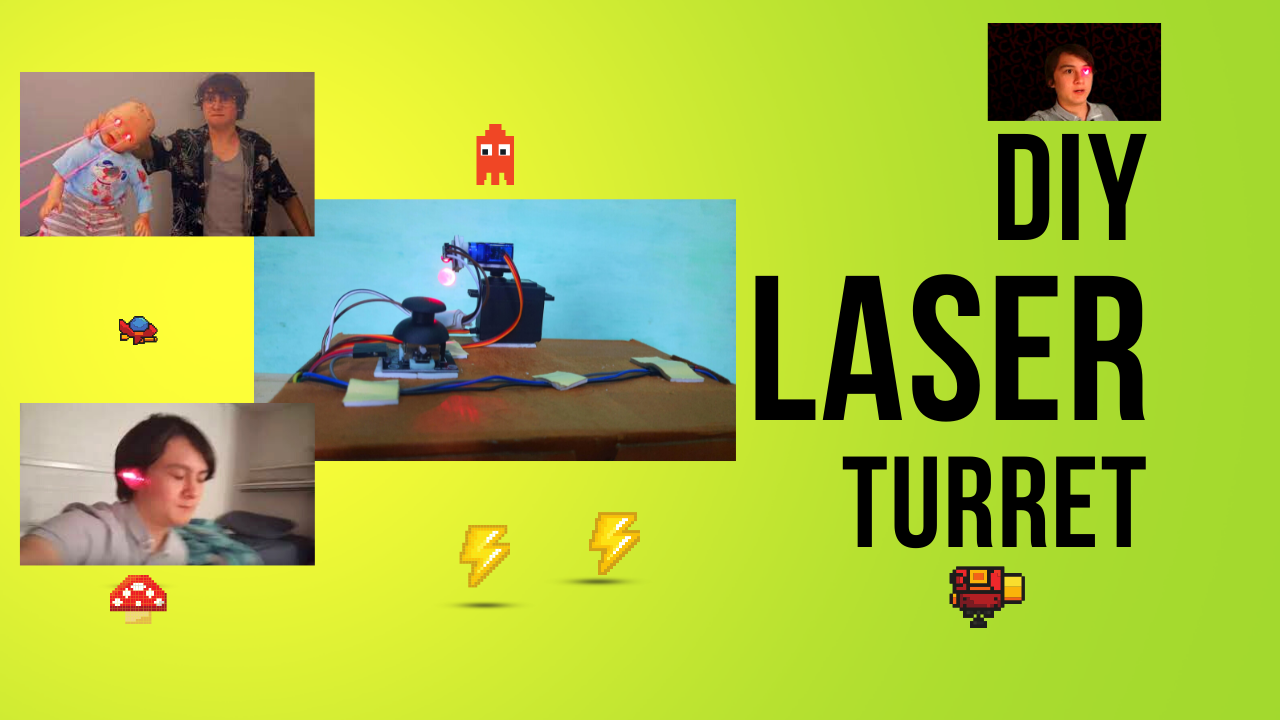LaserTurret It 's a simple gadget that has laser module attached to bidirectional servo mechanism and i its controlled by a ps2 mode joystick. preview - https://youtu.be/Dri1VhaLICI