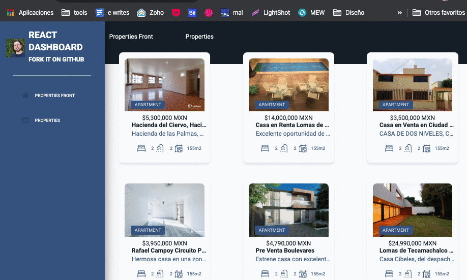 | 1. Clone project | git clone https://github.com/behagoras/dashboard-react |