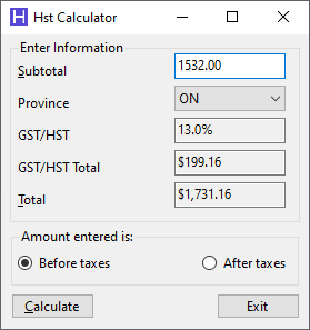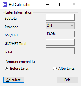 A simple hst calculator for windows based on the one availabe at canada.ca
