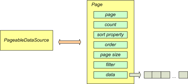 So, the library is in charge of all the paging stuff, making the task of getting paged results on the server simple and intuitive: All you need to do is creating a Page object and make the request to the suitable PageableDataSource implementation. Moreover, the Page object itself implements the Paginator interface in order to navigate across the results pages.