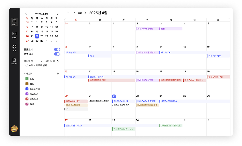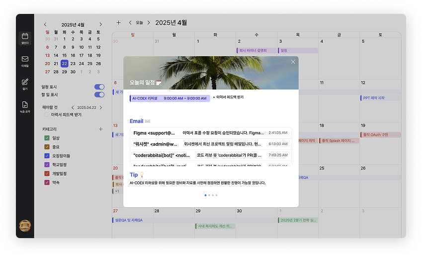AI가 일정, 메일, 회고, 회의를 간편화해 업무를 간편하게 만드는 서비스입니다.