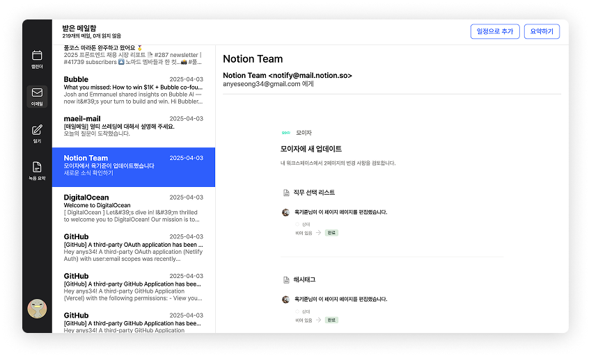 - 이메일 조회하기, 본문 요약 처리, 일정 자동 추가 기능