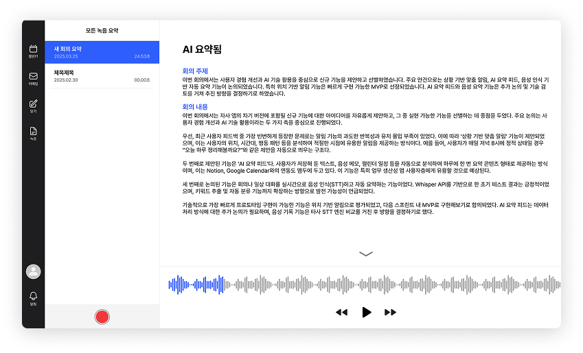 | 하루 일정 요약 | 녹음 요약 페이지 |