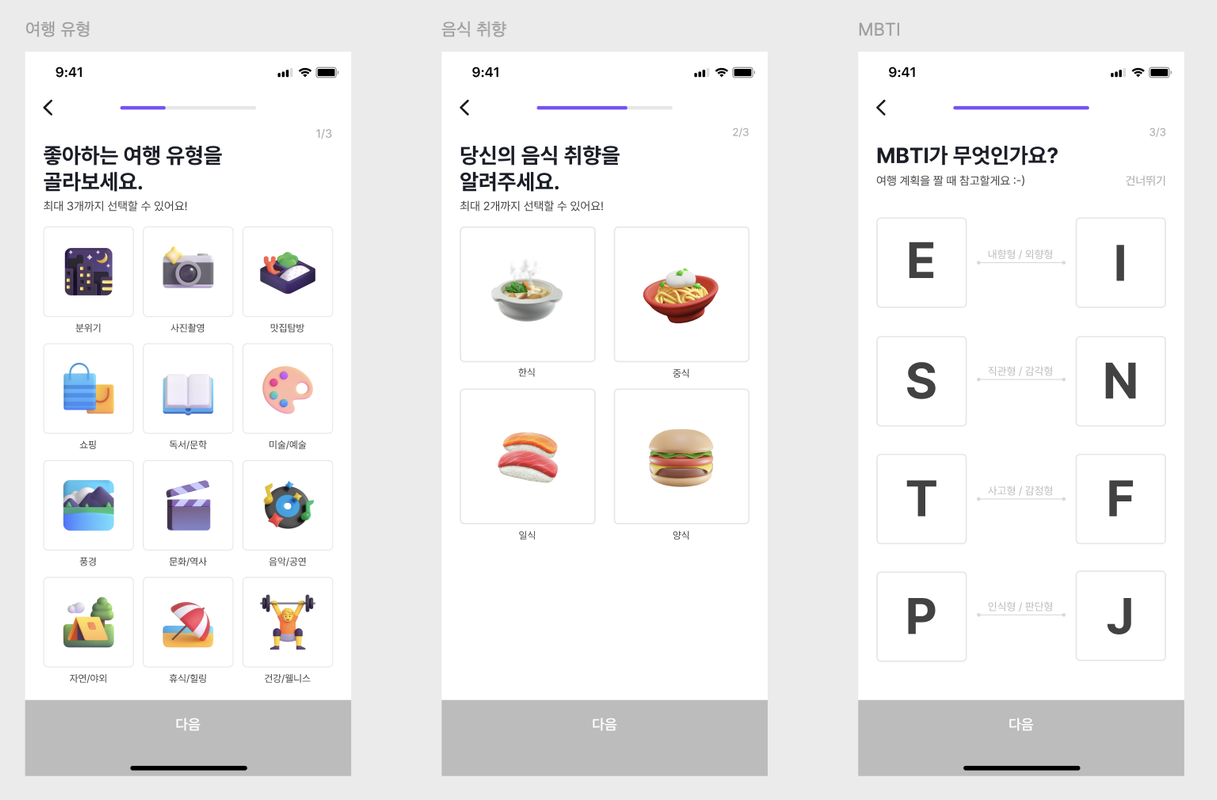 - 맞춤형 일정 추천의 초기 데이터로 활용됩니다.