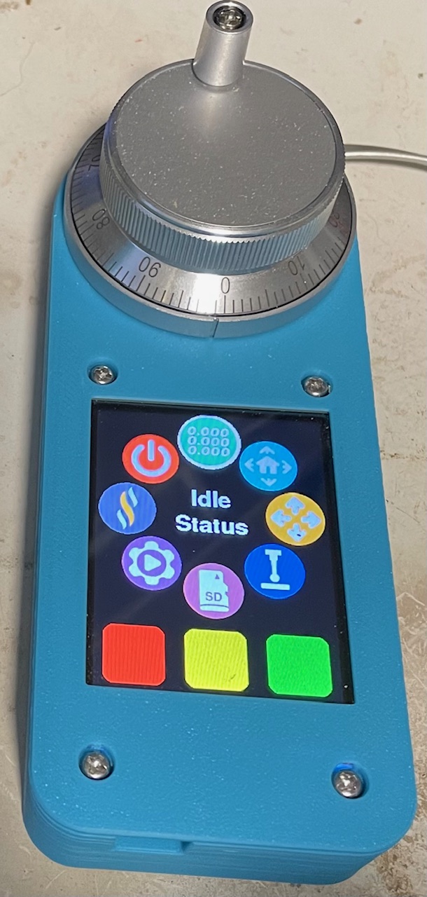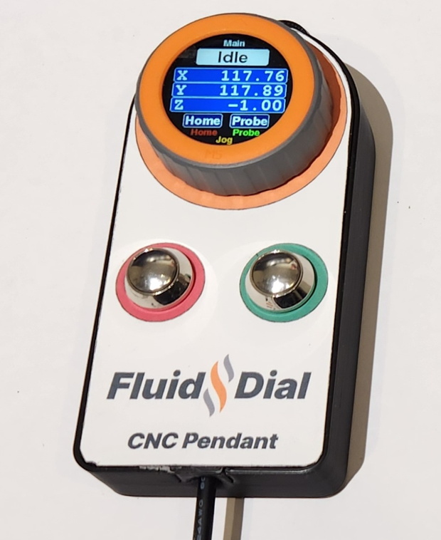 FluidDial: A CNC Pendant for FluidNC Firmware. Wiki pages for more information: M5 FluidDial Pendant (left image) and CYD Dial Pendant (right image). Both have similar functionality and similar cost, using different hardware.
