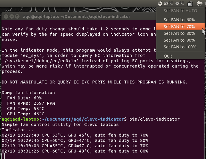 This program is an Ubuntu indicator to control the fan of Clevo laptops, using reversed-engineering port information from ECView.